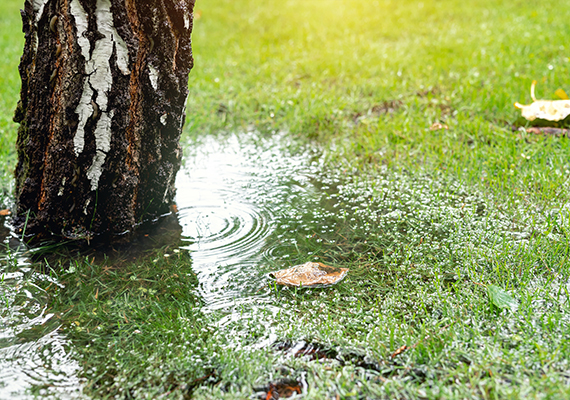 Look for tell-tale signs of poor drainage around your home: standing water, dreaded mosquitos, erosion, exposed surface roots from trees or maybe roots pushing up driveways, walkways and foundations, surface depressions, an inability to grow grass, a change in water patterns during heavy storms (has your neighbor’s property changed?), rotting wood, or water stains on baseboards.