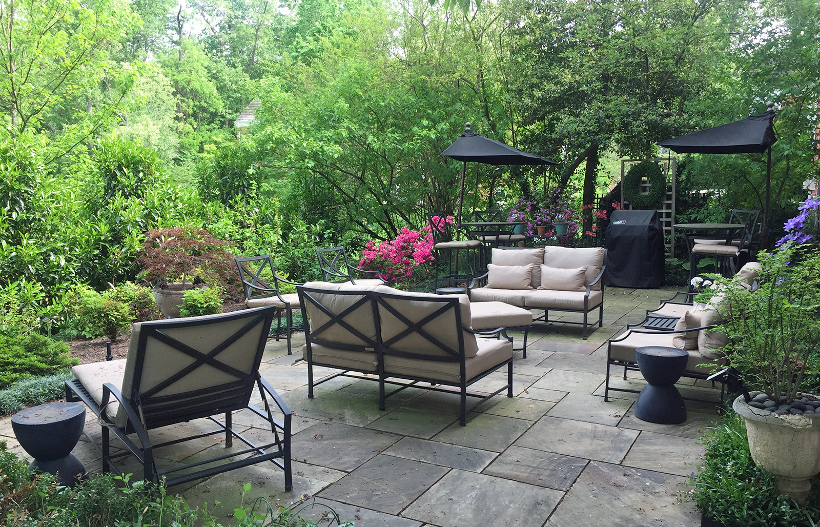 You’ll need a quality contractor. Choose a patio material like flagstone or brick and determine the amount of space you have to work with. Go as big as you can — you want to be able to walk around without bumping into furniture. And don’t forget to put a PVC pipe under the patio to run wires for landscape lighting because that, my friend, is the secret to the outdoor room lasting long into the evening. Bring out a Bose wireless speaker and a few citronella candles, and you can rock the night away. Add a firepit or heater and extend the season (though a mohair blanket and a hot drink work, too).
