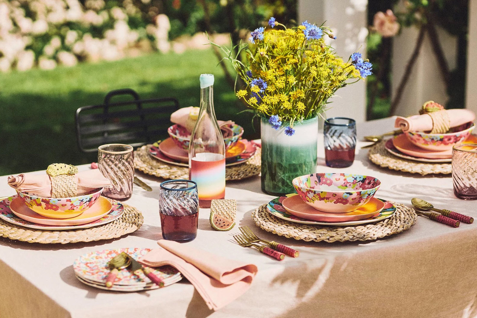 There’s no need to bring all of your nice glass pieces outside. Melamine pieces are excellent for outdoor dining and can be quite stylish. If you’re a grandmillennial, take a peek at these bamboo plates, which are available for purchase online via DC based boutique Tuckernuck. We’re also loving these blue and white beauties from Sur La Table.