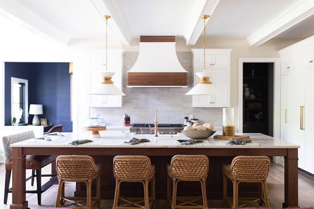 Trends were all white for so long, but now stained wood features—which elevate a room by adding depth—are having a resurgence. “Wood adds warmth to a space by bringing a bit of nature inside,” Joana Rittmayer, associate designer and project manager at Laura Yeager Smith Home & Design in Hudson, Ohio reports. She notes that it can be tricky to achieve the perfect wood stain, finding a delicate balance between being too warm and just warm enough. “Sometimes, nature provides the perfect color in its original form, especially with a walnut finish.”