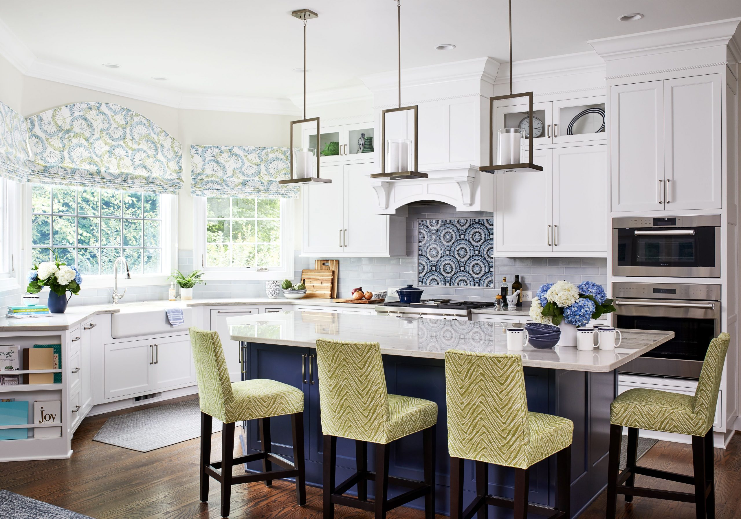 You will want to explore the world of options available to you when it comes time to choose a countertop material. “There are a lot of amazing and beautiful options and finishes for tops – it is worth going to some slab yards to get exposed to the possibilities,” Ballard says. “Bring your cabinet samples and a paint wheel to help to coordinate your palette of finishes.” He suggests visiting Marble Systems in Merrifield, Virginia, to explore various materials. “They sell lots of tiles so you can choose your tile backsplash while shopping,” Ballard says, noting that it’s smart to speak with the staff there about a slab’s durability. “If you run your hand across the slab and feel ridges—anything other than the feeling of an ice skating rink—those areas will require maintenance and can absorb stains,” Ballard explains. He advises those looking for something more resistant to consider Silestone and Caesarstone, which require little maintenance.