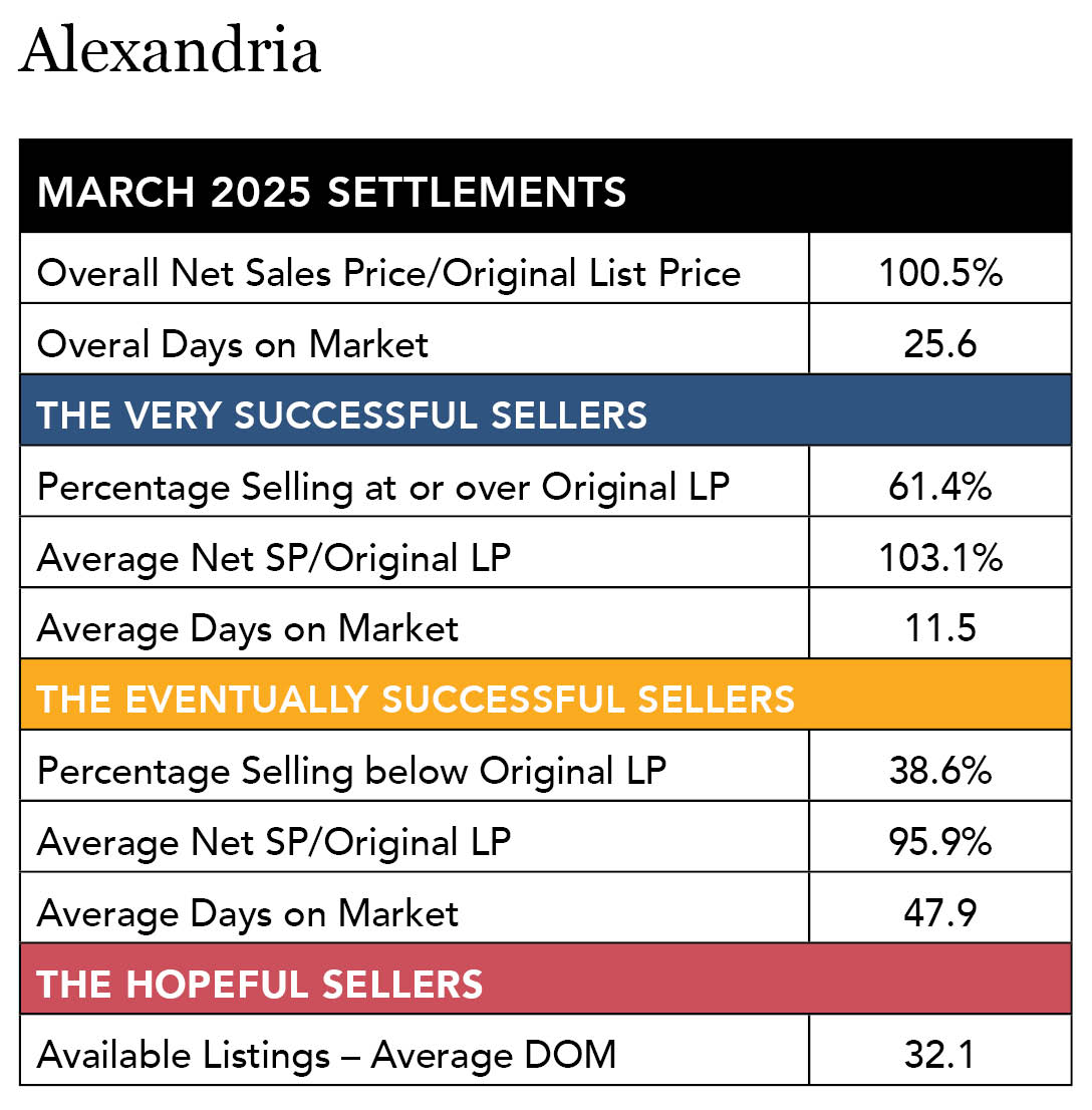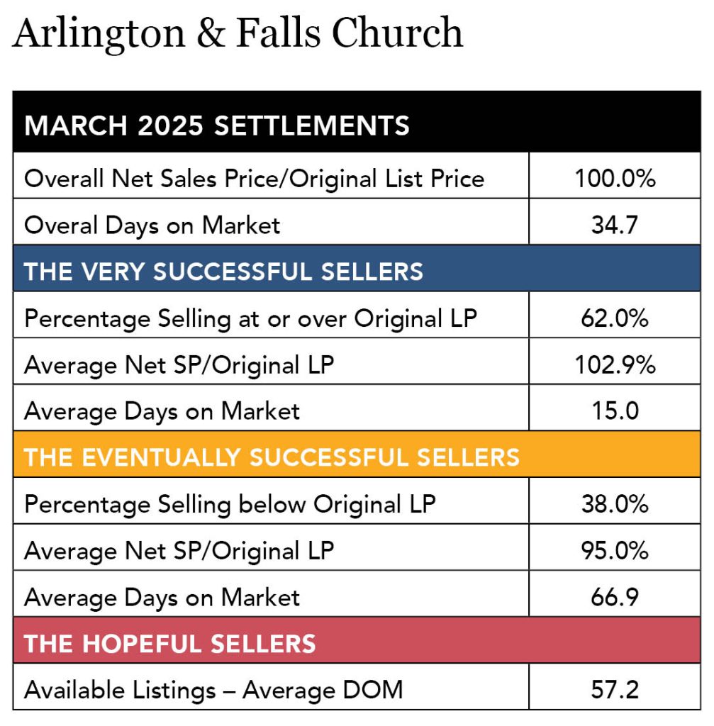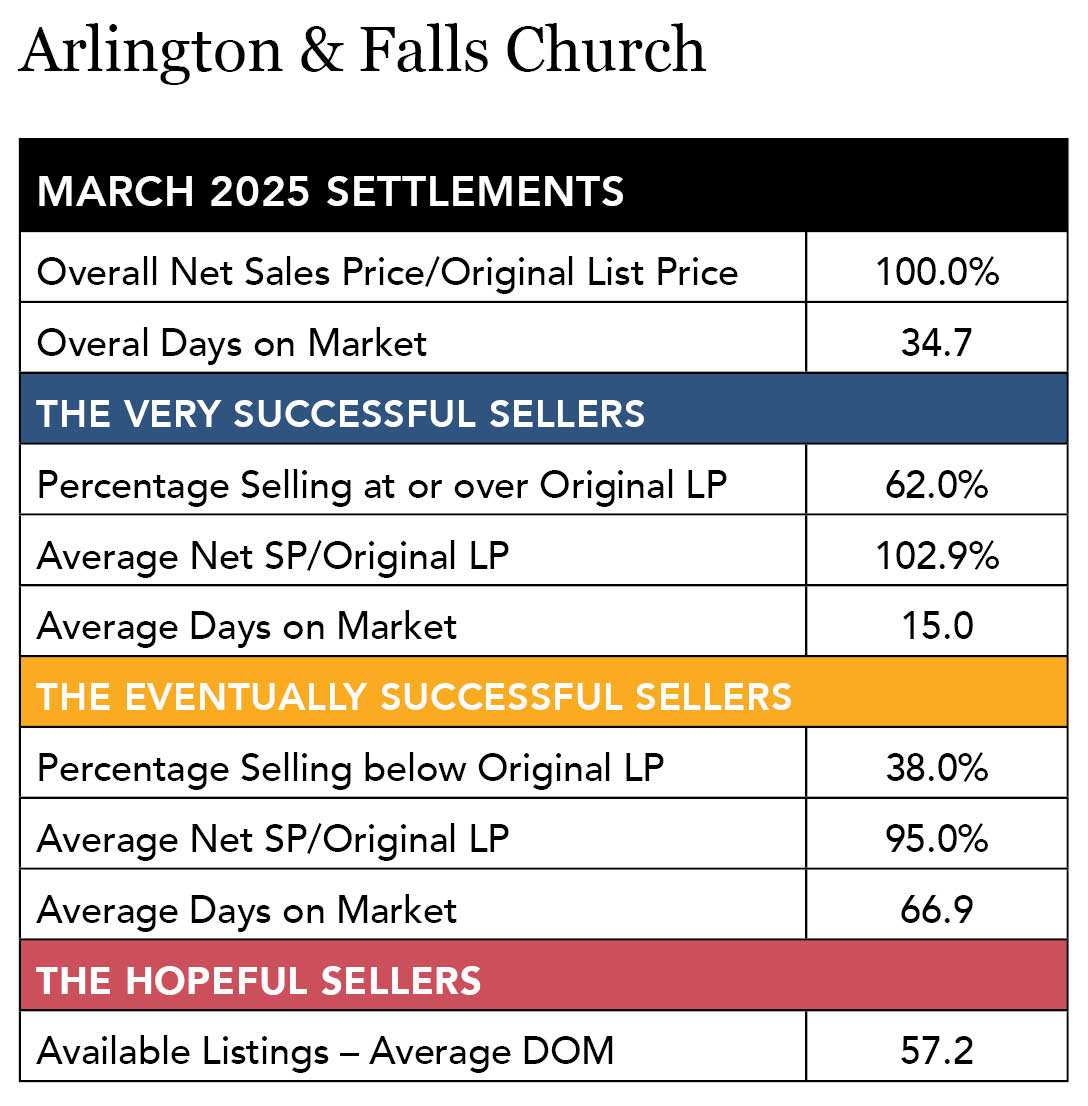 Given the uncertainty in the economy, the market is holding up well. And as always, the specifics change when looking at more granular geographic, property type and price range data. For example, even though the overall condo absorption rate in Arlington County was 34% in March, it was 58% in Shirlington/Fairlington and 20% in Crystal City. Those differences really matter to a seller when making the final decision with an agent about what price to list a property.